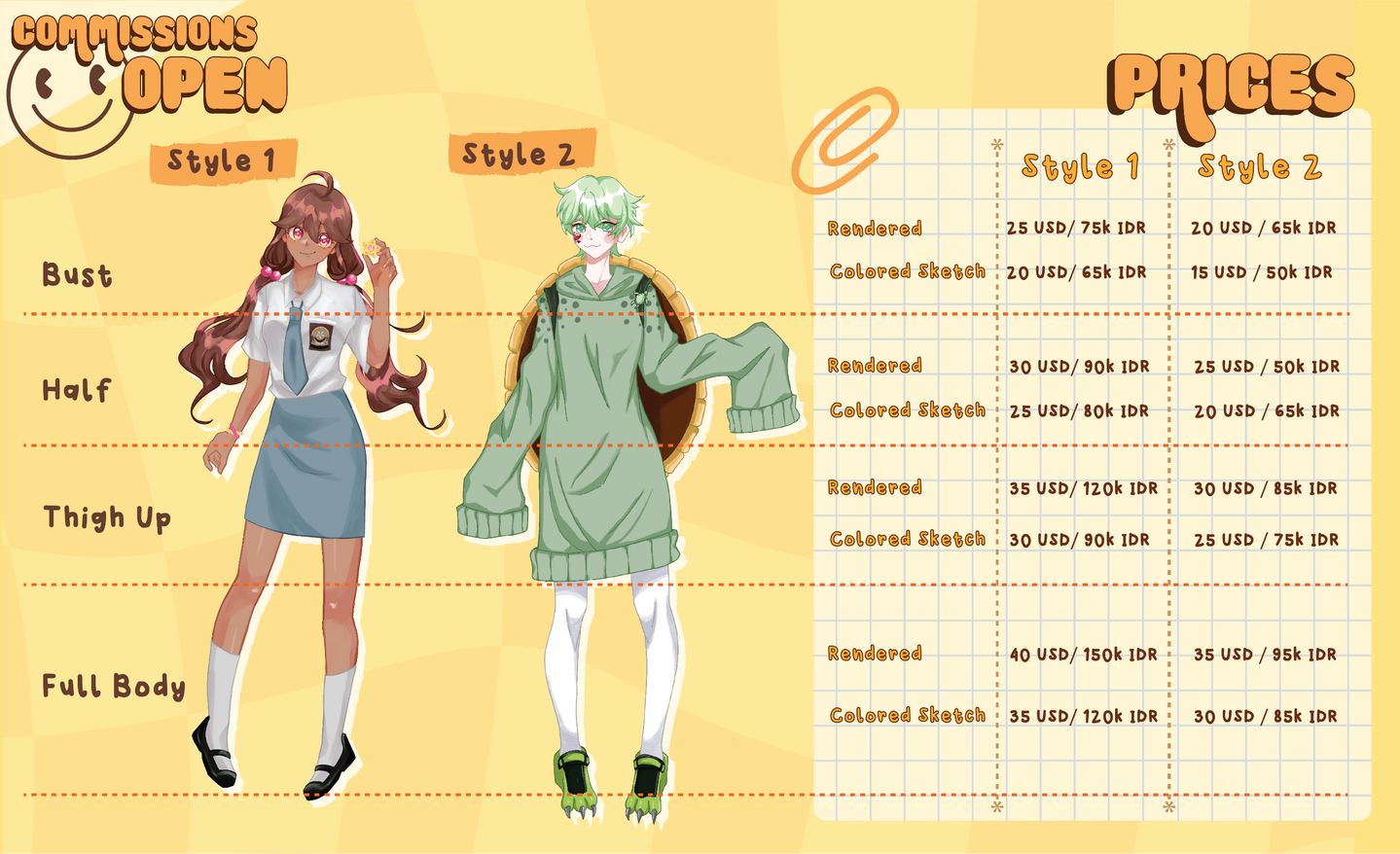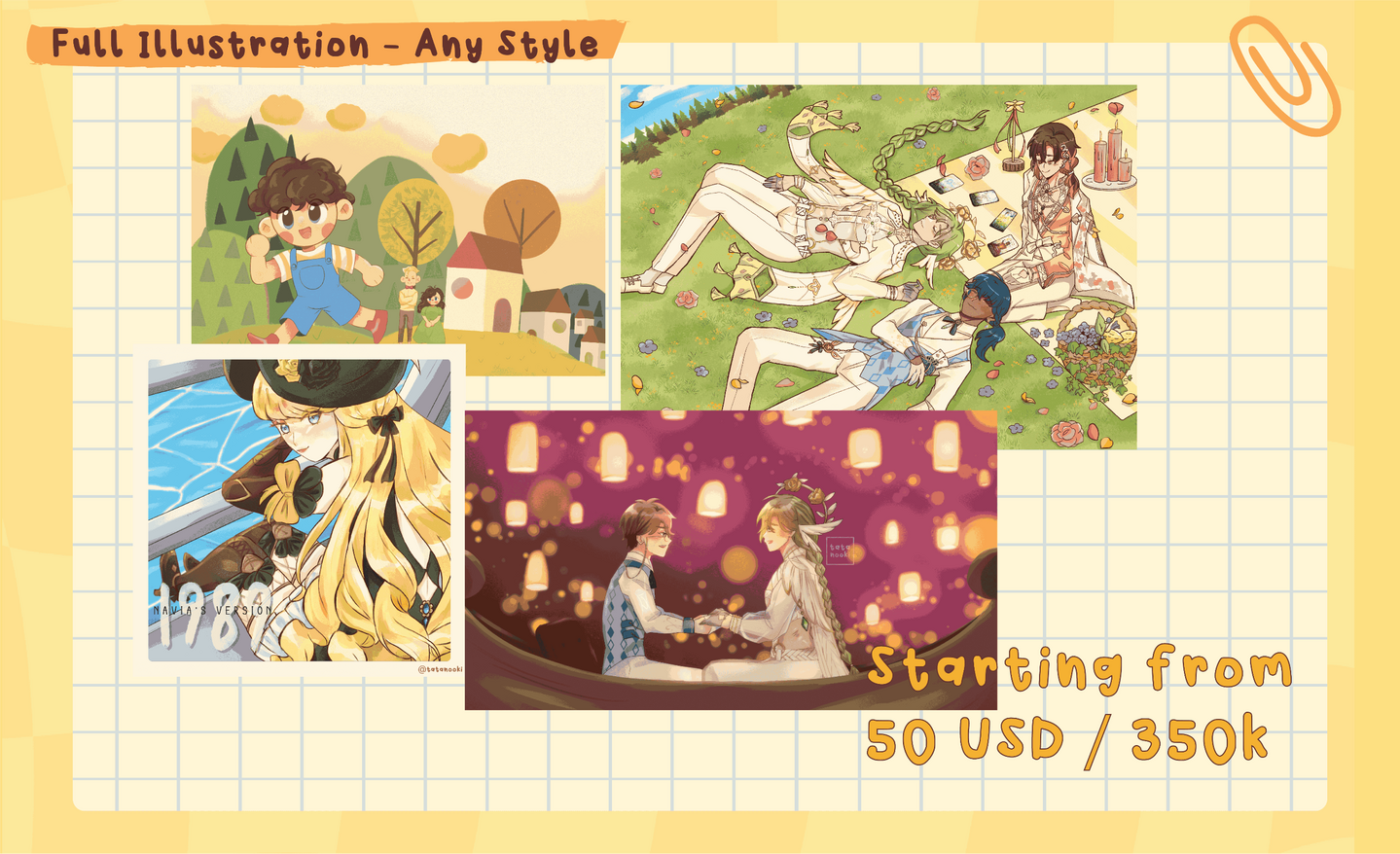 DURATION : Character Art takes 1-2 weeks, Character Sheet takes 2-3 weeks depending on design complexity. Full Illustration can take from 2 weeks to 2 months. I’m not available ALL the time but I try to be easy to contact. I do not accept rush commissions for now.